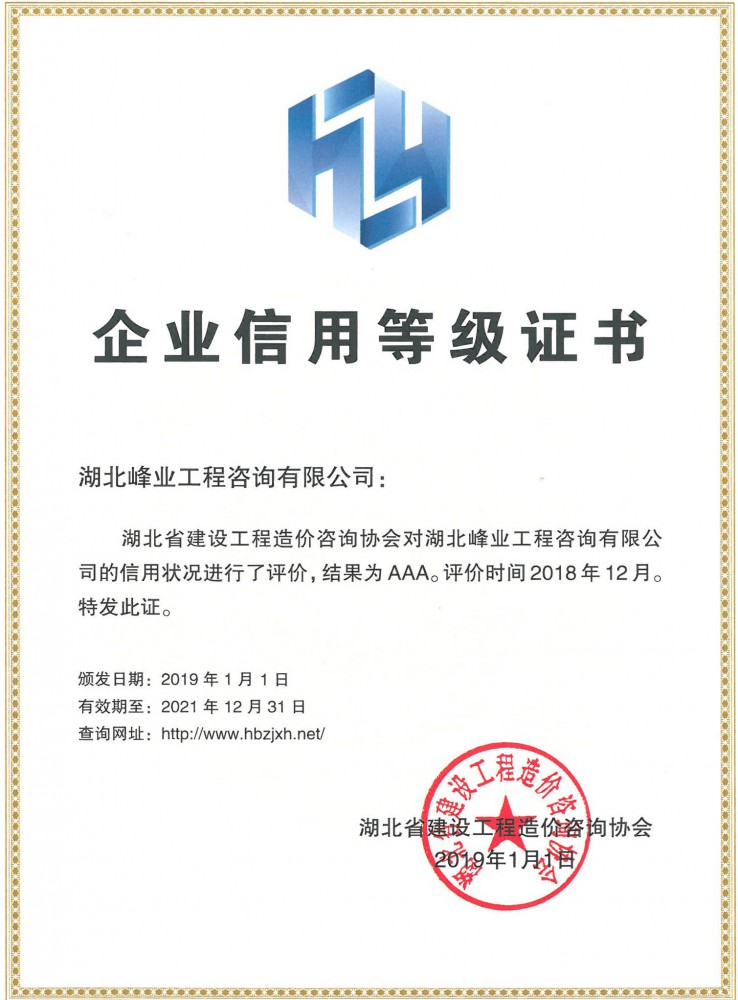 企業(yè)信用等級證書